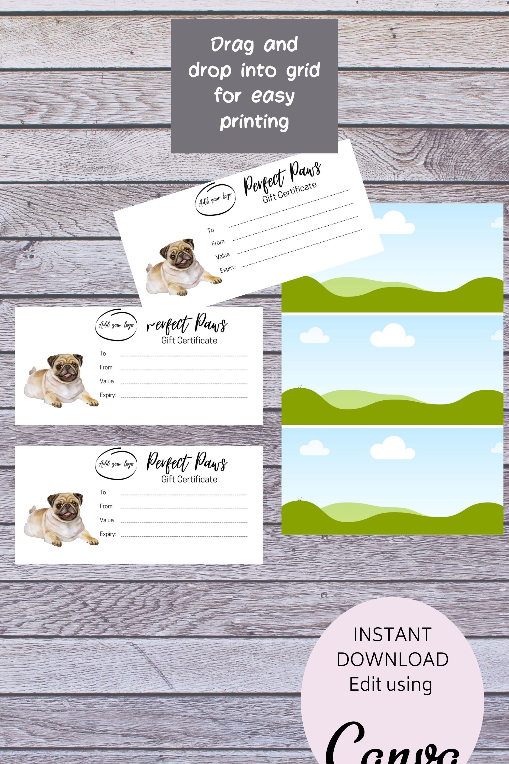 Gift Certificate Template Dog Grooming DIY Gift Voucher for Etsy