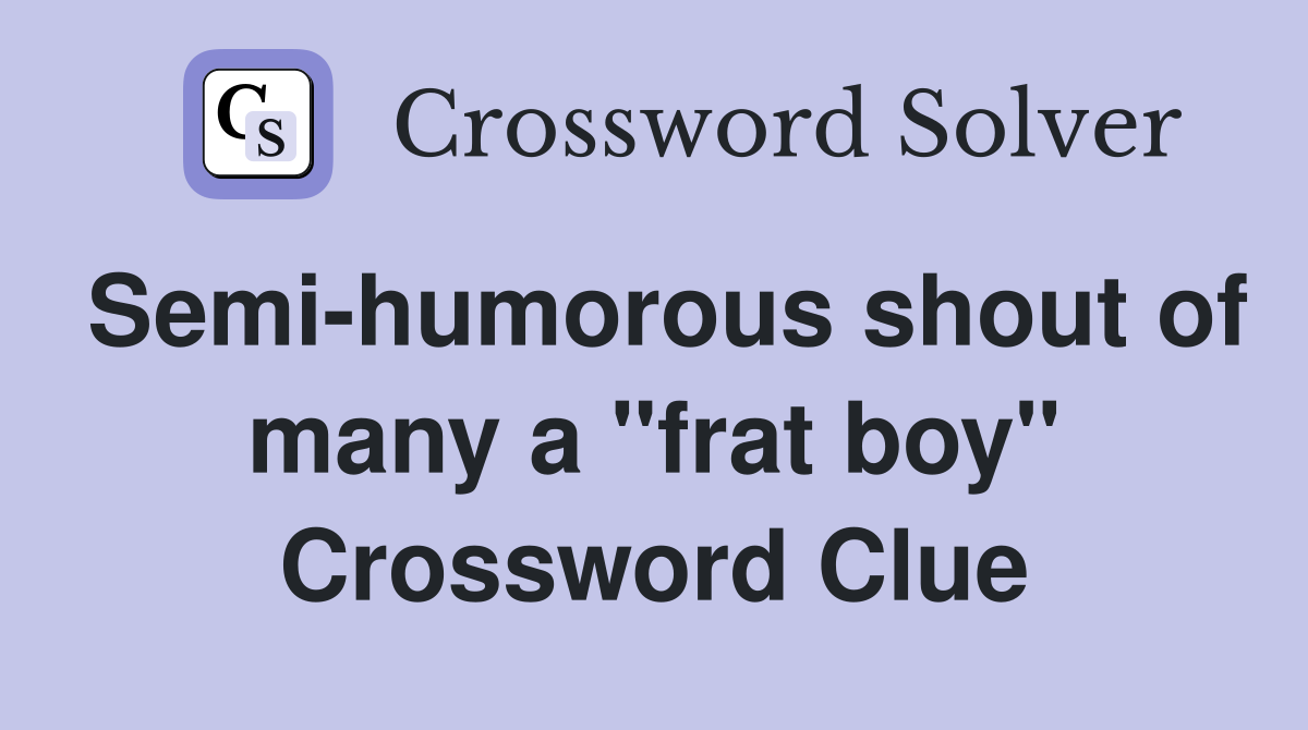 Semi humorous shout of many a quot frat boy quot Crossword Clue Answers