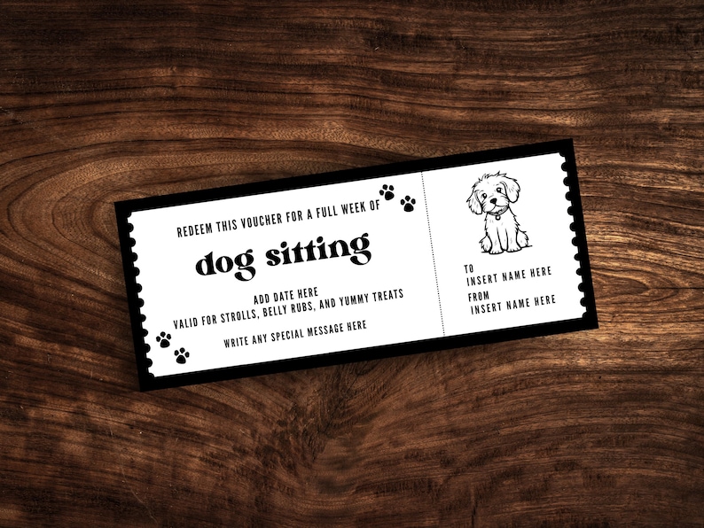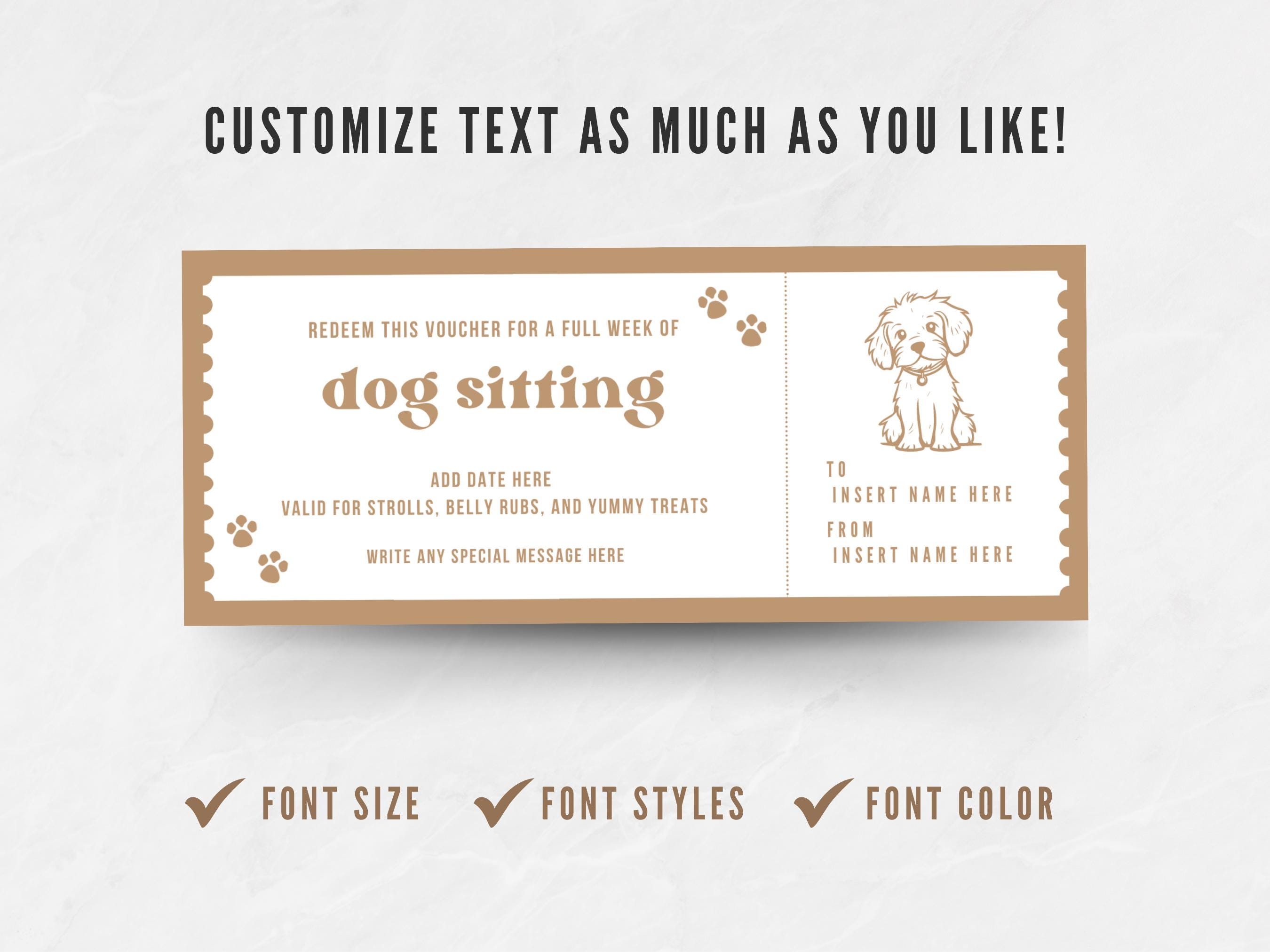 Custom Dog Sitting Gift Coupon Editable Canva Template INSTANT DOWNLOAD