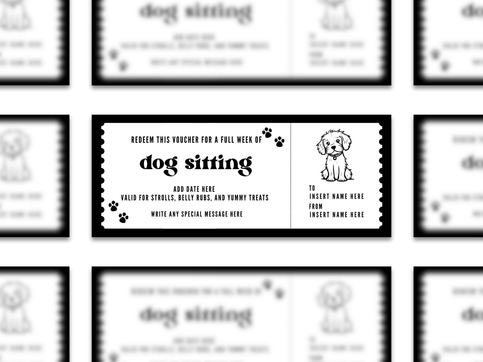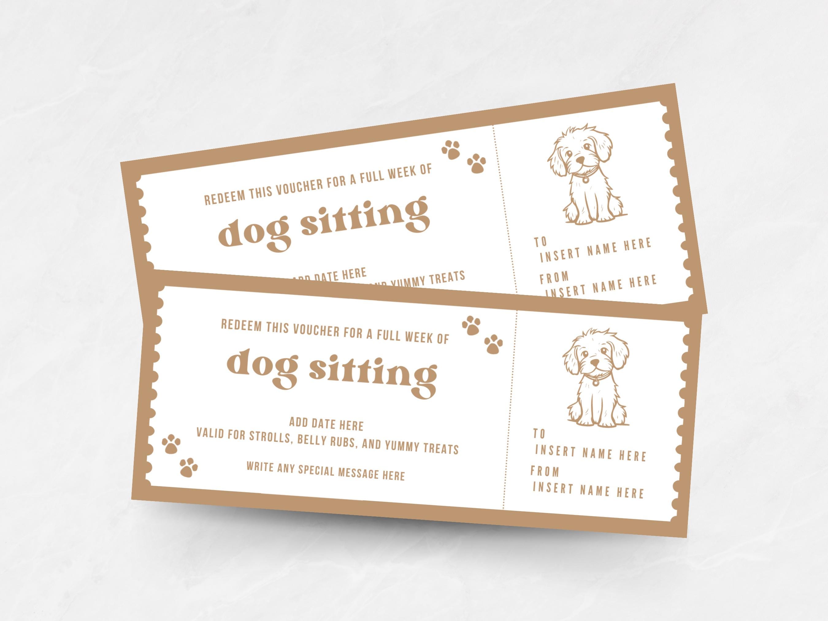 Dog Sitting Coupon Voucher for Mother #39 s Day Father #39 s Day Birthday