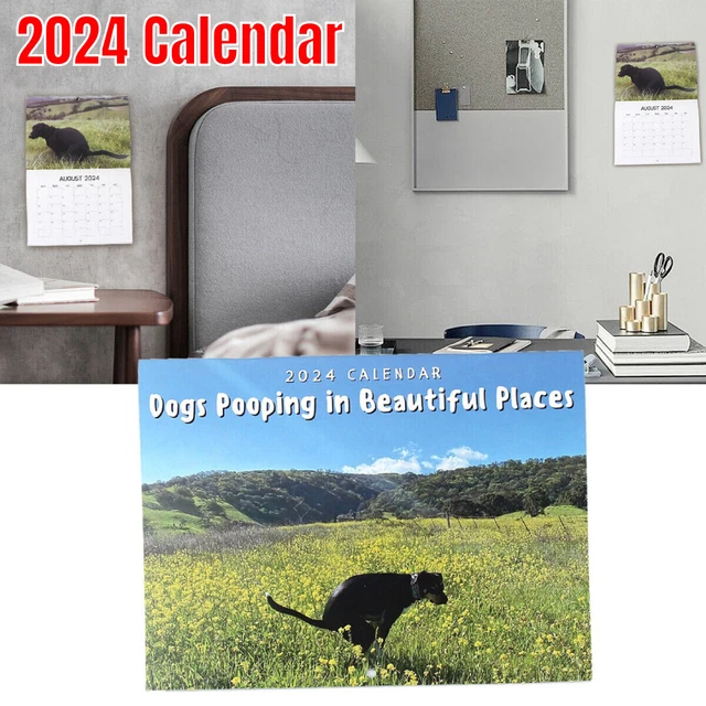 2024 Calendar Dog Pooping Wall Calendar Funny Pooping Dogs Monthly Wall