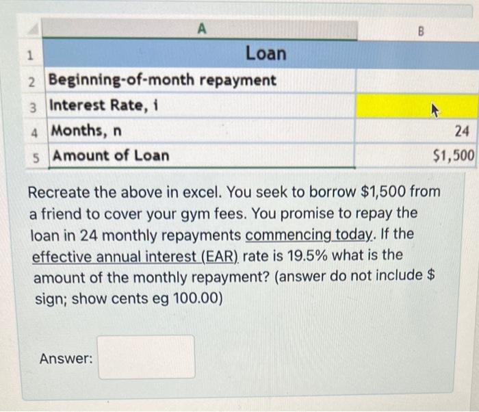 Solved Recreate the above in excel You seek to borrow Chegg com