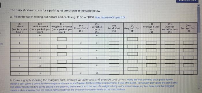 Solved The daily short run costs for a parking lot are shown Chegg com