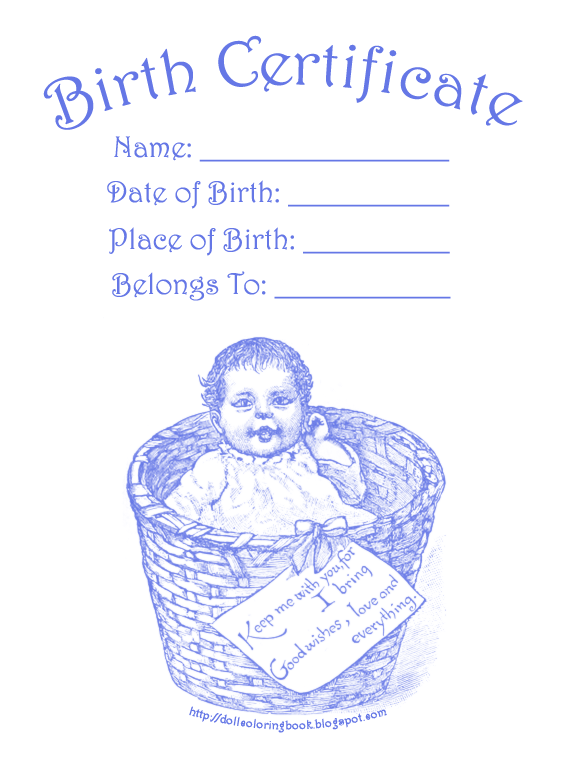 Pink and blue birth certificates for your dolls The Doll Coloring Book