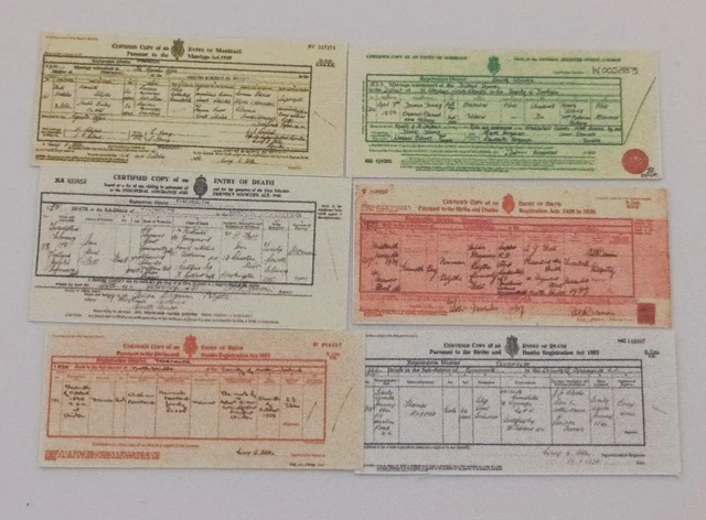 DOLLS HOUSE 1:12 scale Miniature 6 x Birth/Death/ marriage