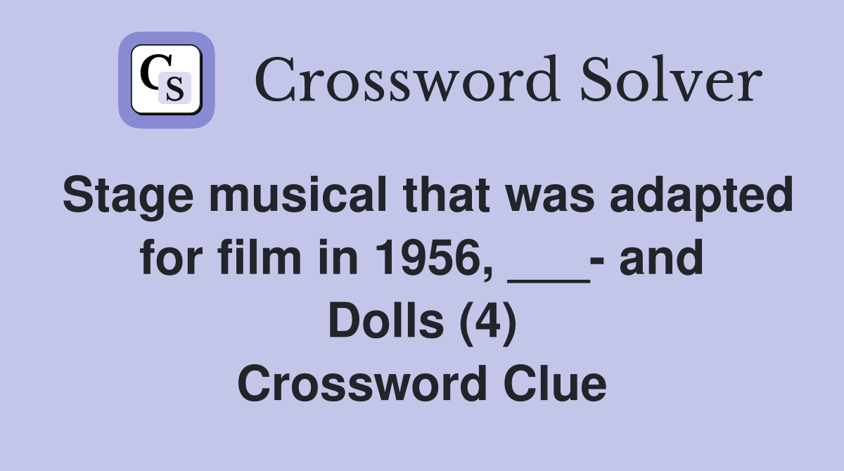 Stage musical that was adapted for film in 1956 and Dolls (4