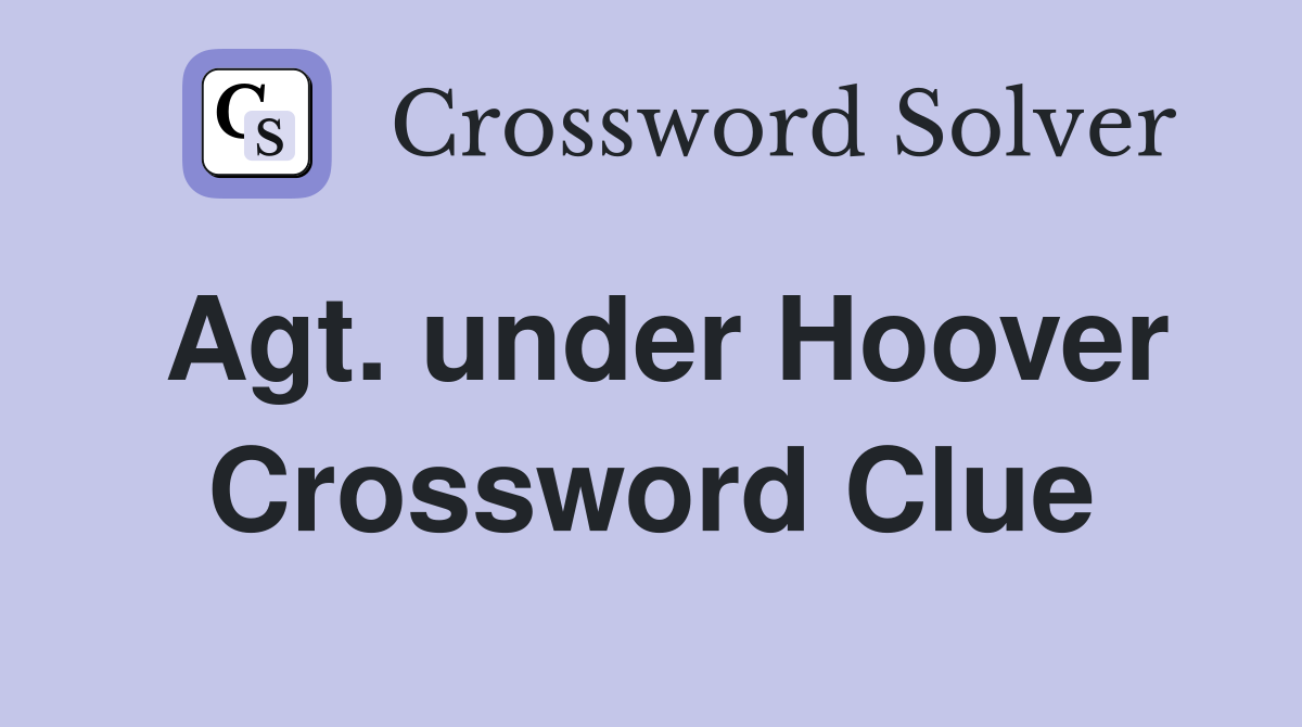 Agt under Hoover Crossword Clue Answers Crossword Solver