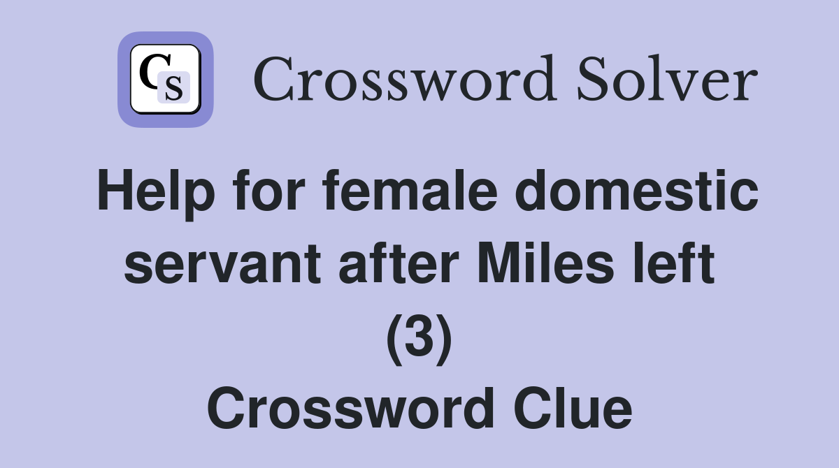 Help for female domestic servant after Miles left (3) Crossword Clue
