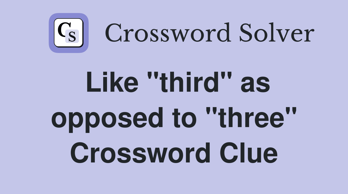Like quot third quot as opposed to quot three quot Crossword Clue Answers Crossword