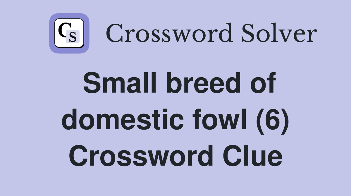 Small breed of domestic fowl (6) Crossword Clue Answers Crossword