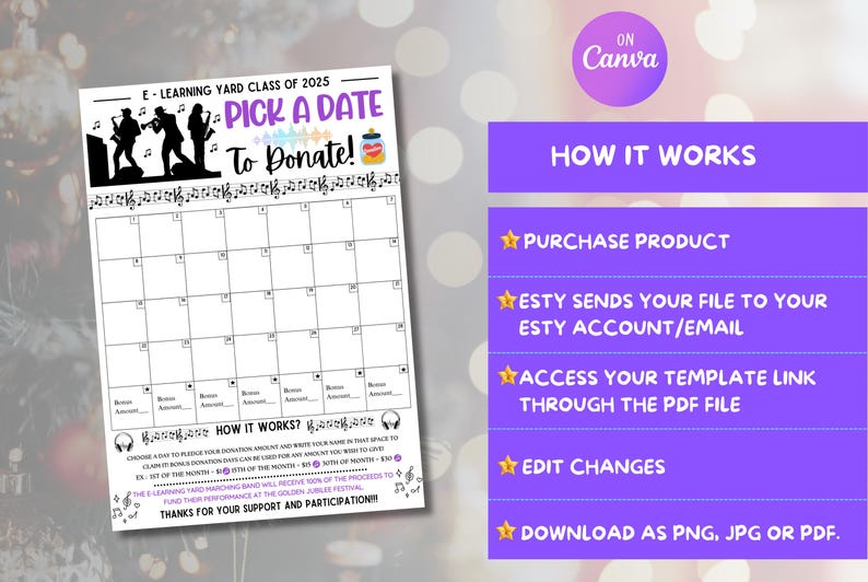 EDITABLE Pick A Date to Donate Fundraiser Pay the Date Music