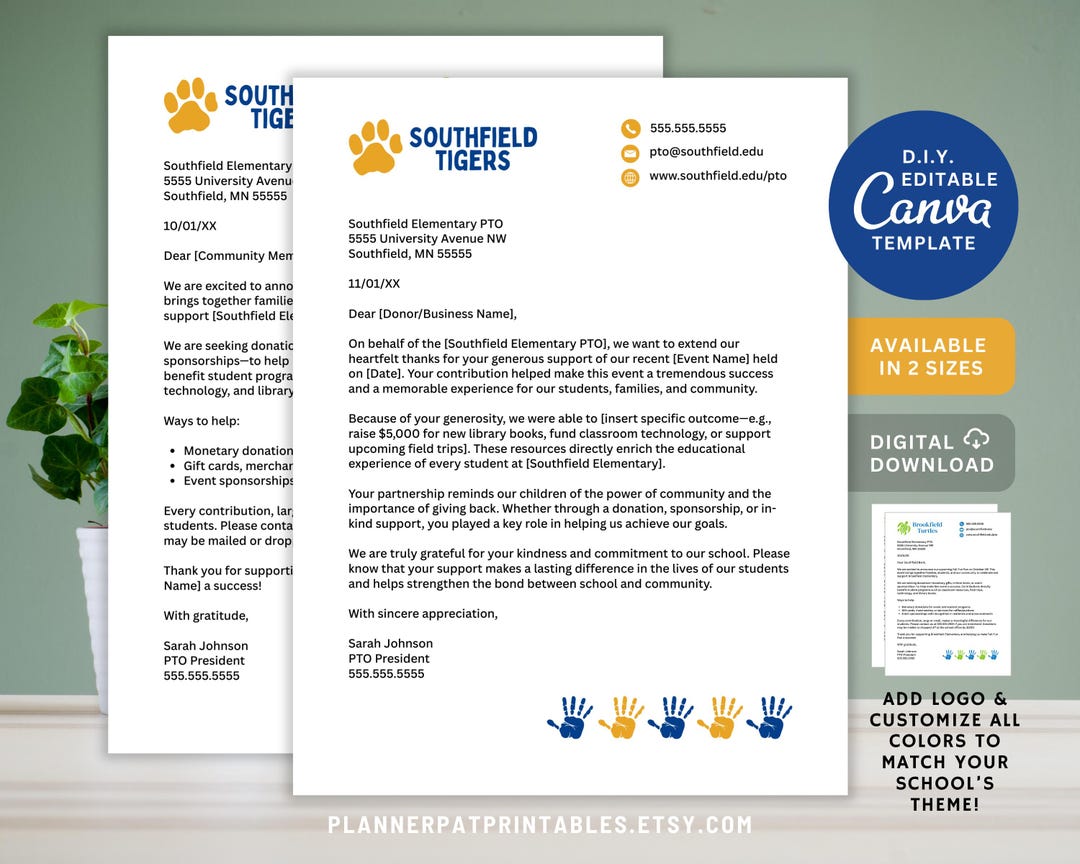 Editable PTA PTO Event Donation Request Thank You Letter Templates