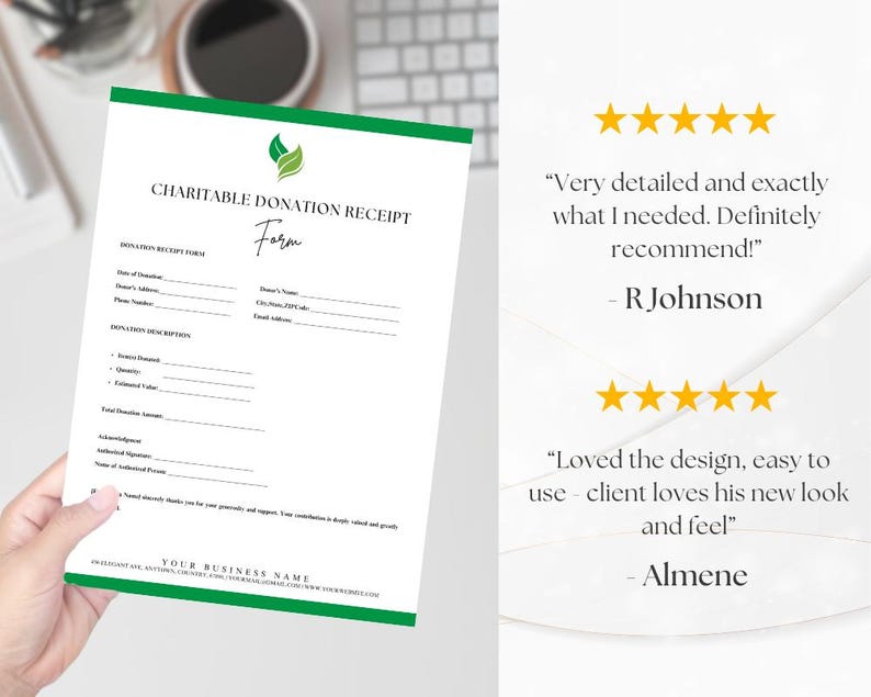 Donation Receipt Template Editable Charity Form Nonprofit Tax