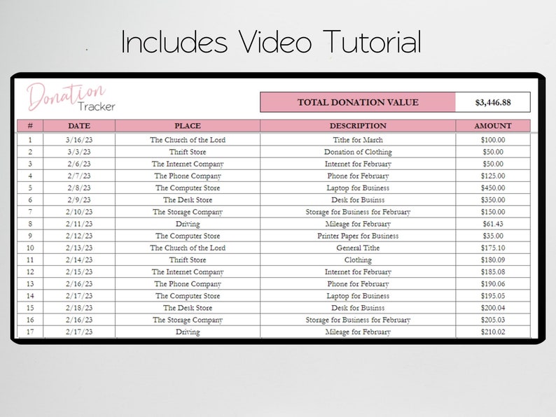 Donation Tracker Excel Spreadsheet Donation Template Google Etsy