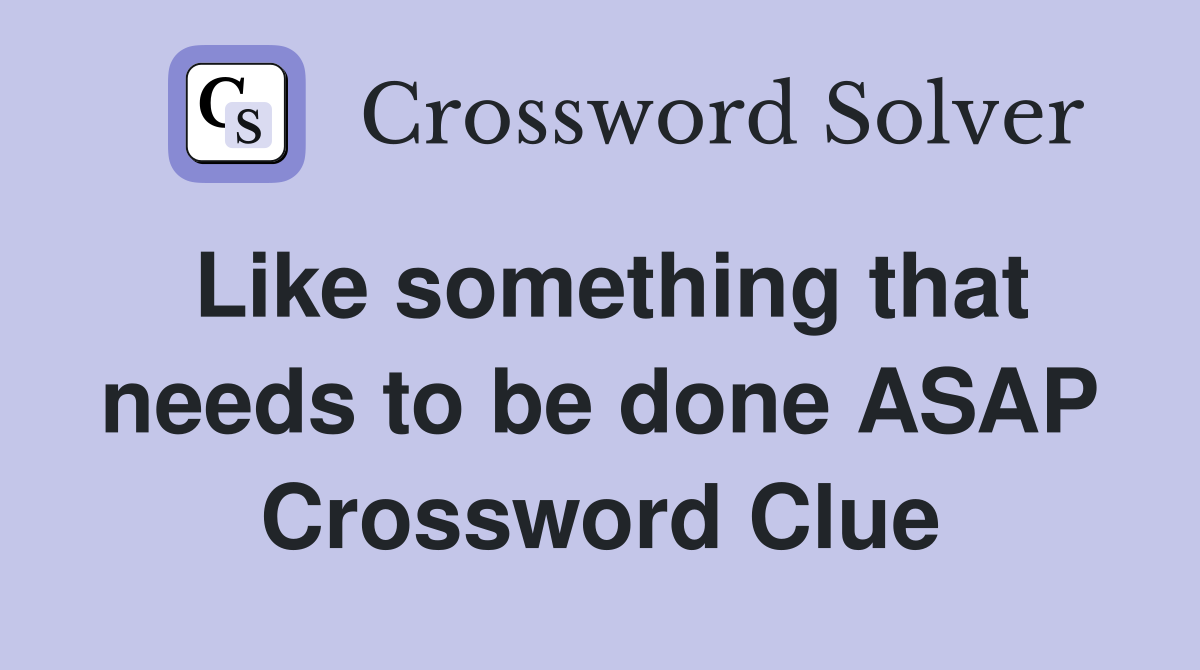 quot I need this work done yesterday quot shouted the Crossword Clue