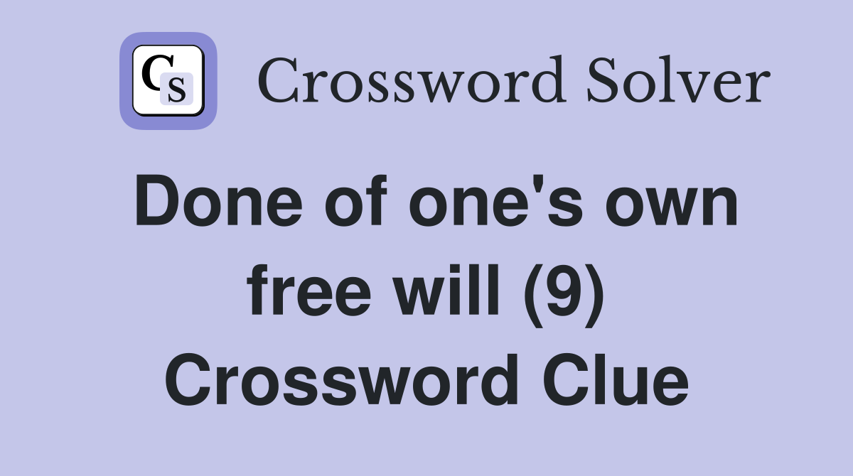 Done of one s own free will (9) Crossword Clue Answers Crossword Solver