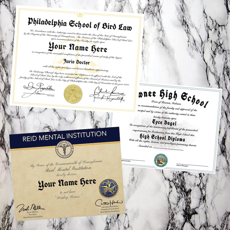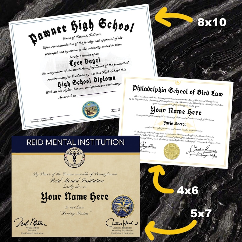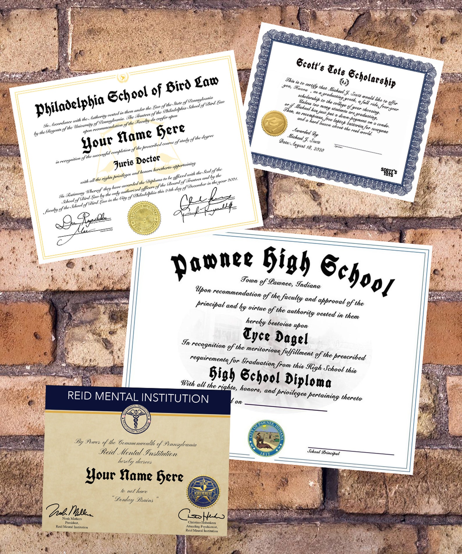 Donkey Brains Certificate Bird Law Diploma the Office Scotts Tots