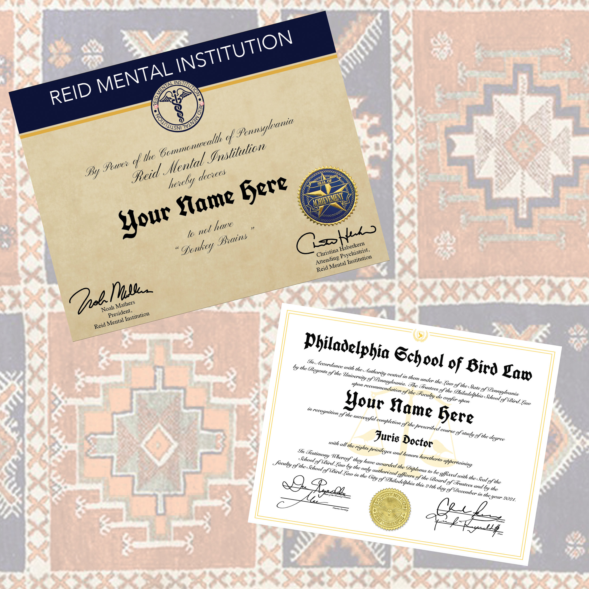 Donkey Brains Certificate Instant Download Bird Law Diploma the
