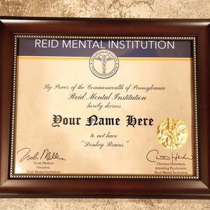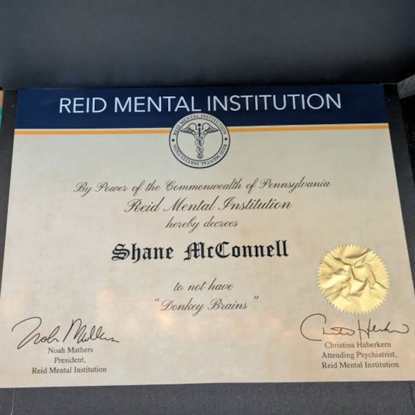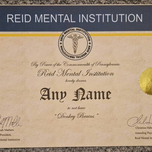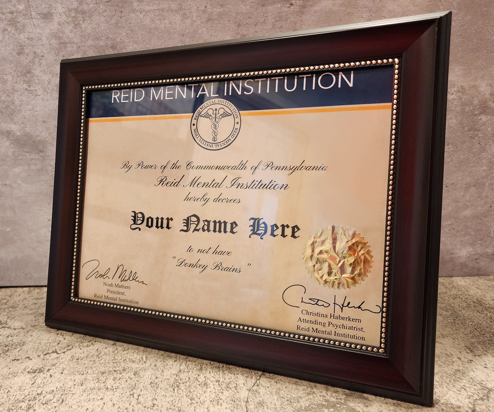 Donkey Brains Certificate Its Always Sunny Donkey Brain Reid Mental