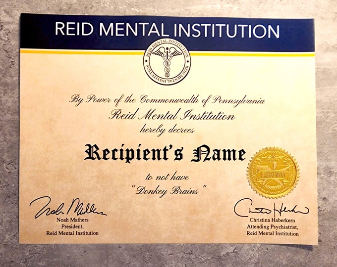 Customizable donkey Brains Certificate Print Etsy It #39 s always sunny