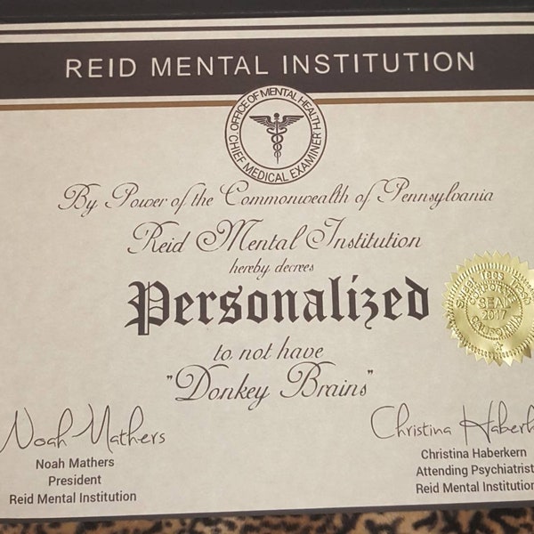 Donkey Brians Certificate Custom donkey Brains Etsy