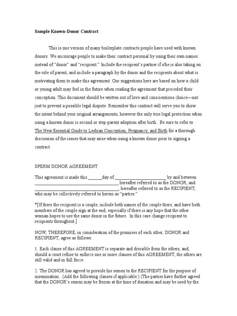 Sample Known Donor Agreement PDF Contact (Law) Arbitration