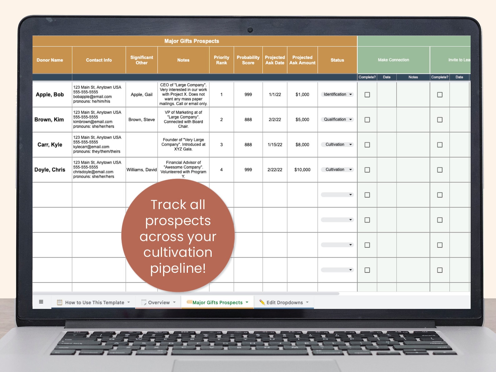 Major Donor Cultivation Plan Tracking Template for Nonprofits Google
