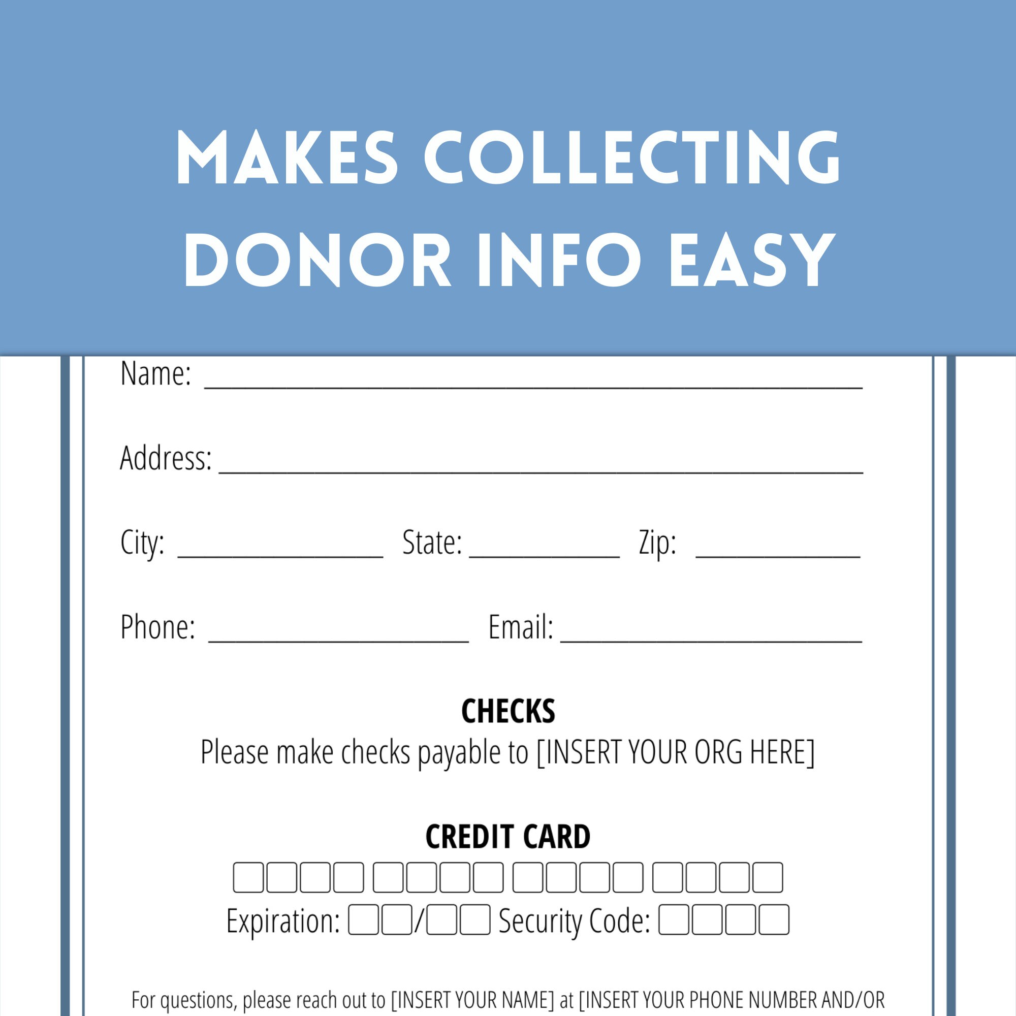 Donor Information Form Template Pdf Canva Etsy