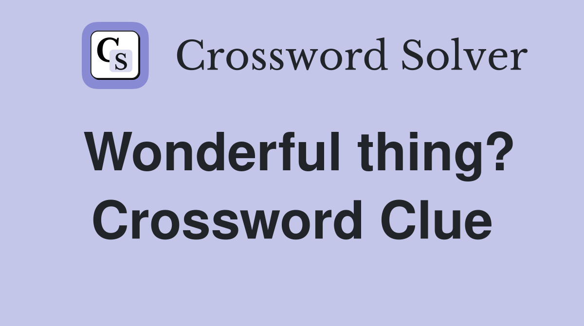 Wonderful thing? Crossword Clue Answers Crossword Solver