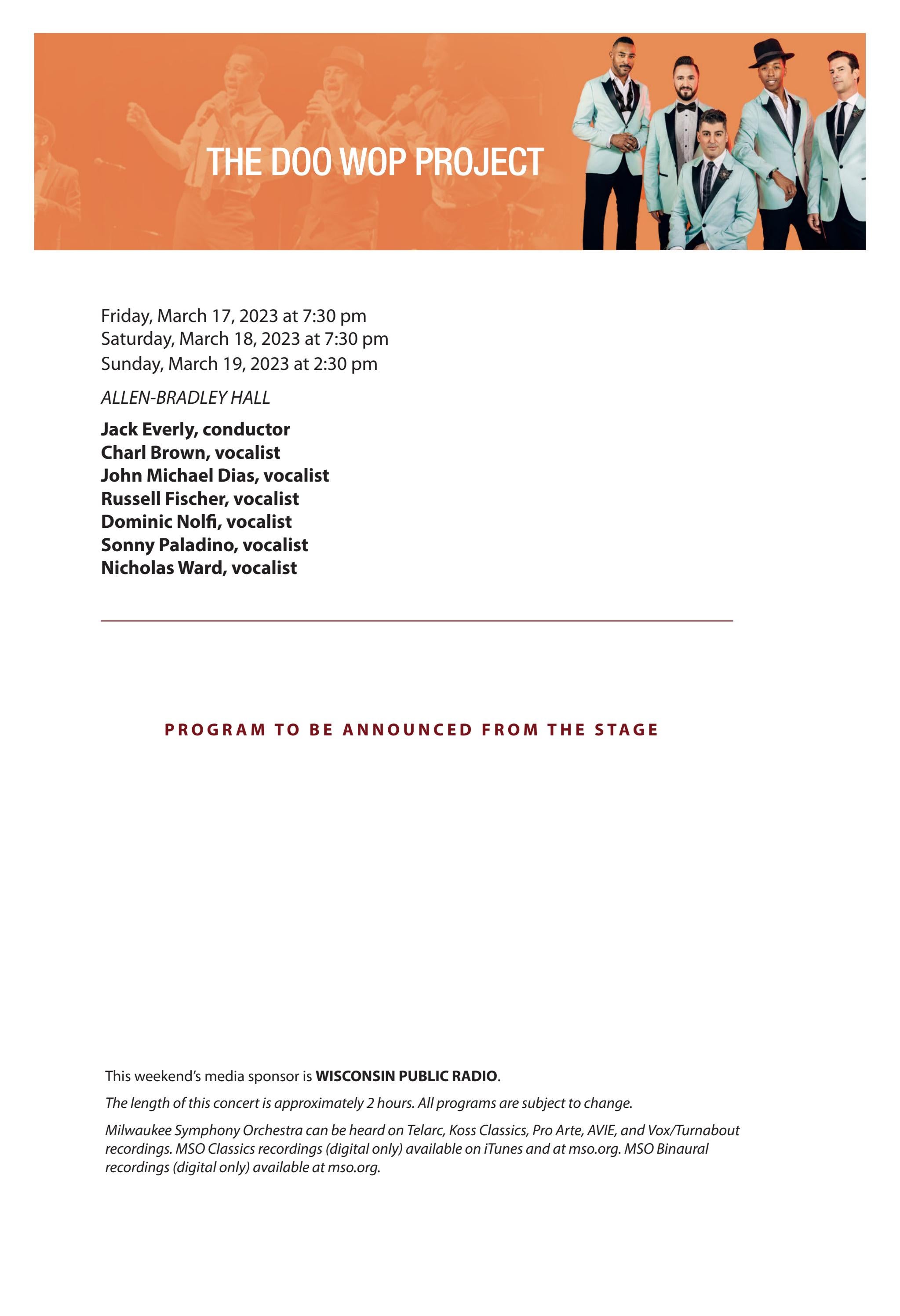 THE DOO WOP PROJECT by Milwaukee Symphony Orchestra Issuu