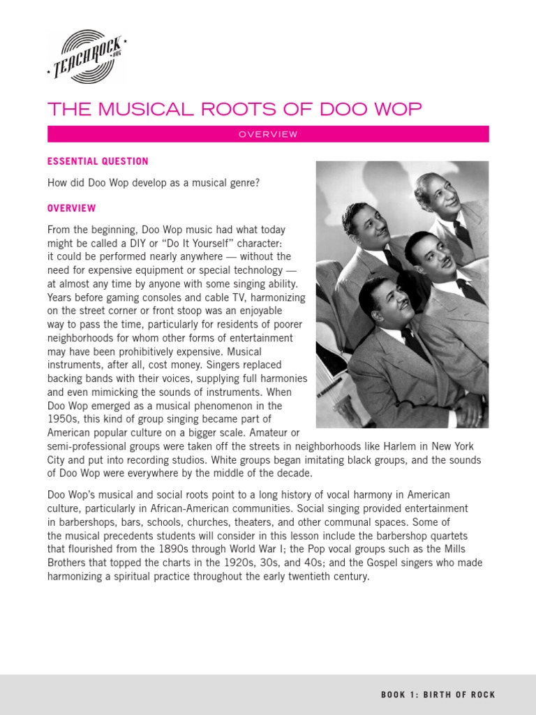 The Musical Roots of Doo Wop: Essential Question PDF Singing Harmony
