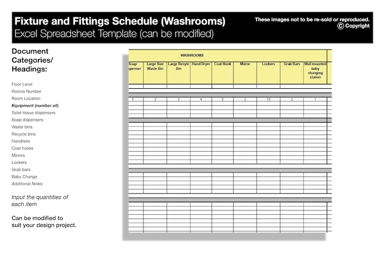 Fixture and Fittings Template (for Washrooms) in Microsoft Excel Format