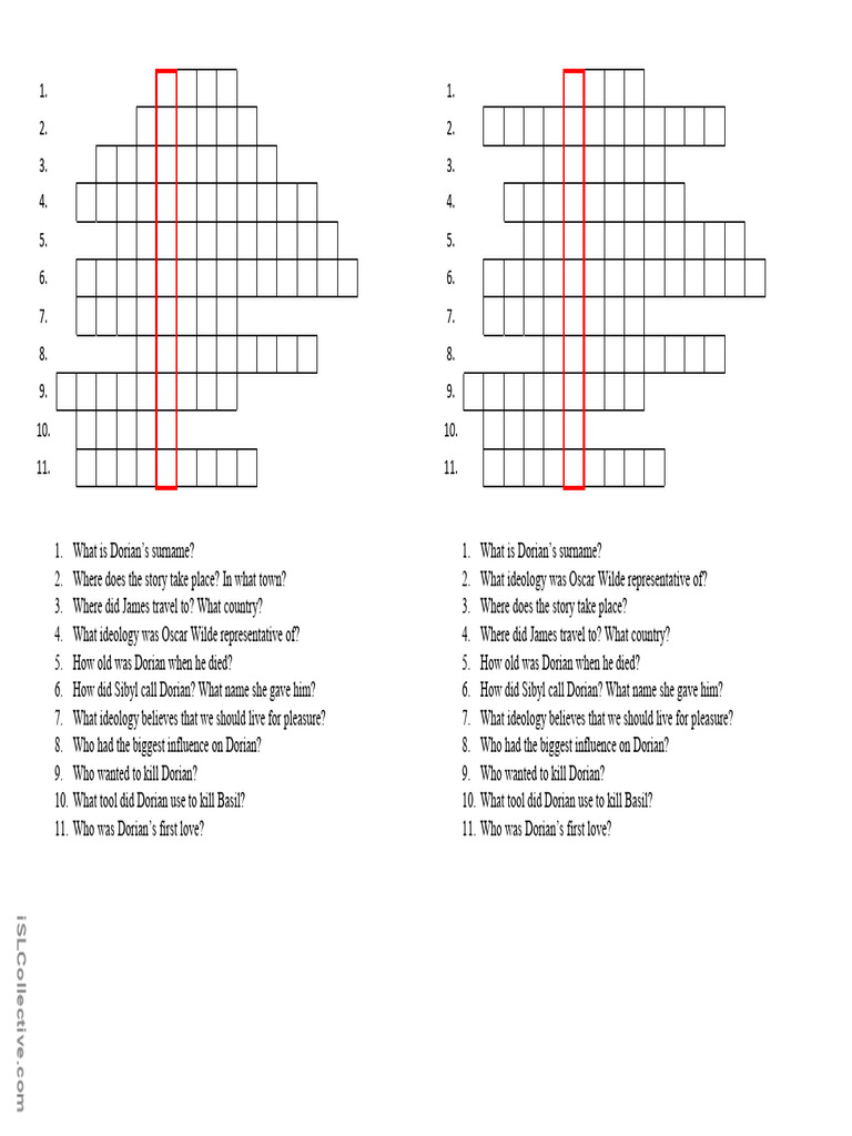 Picture of Dorian Gray Crossword Crossword PDF
