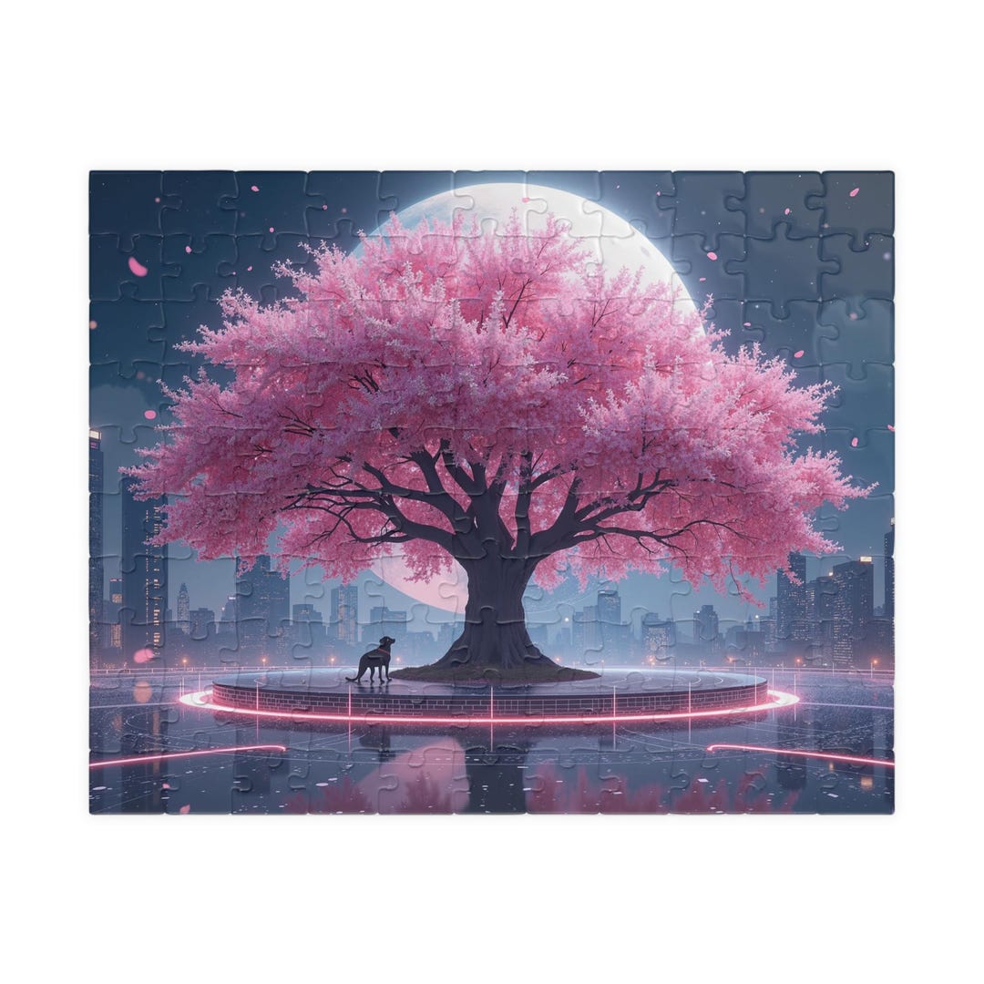 Puzzle: Sakura and Future City Night View Stylish Space Decor Cool