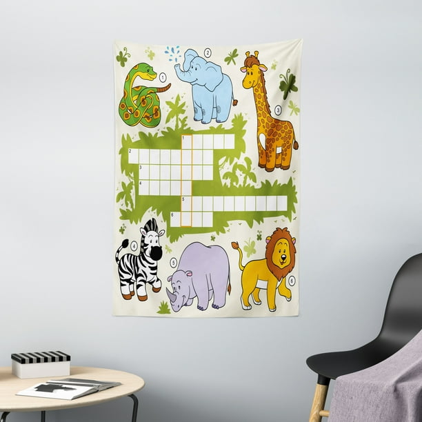 Word Search Puzzle Tapestry Colorful Crossword Game for Children Wild