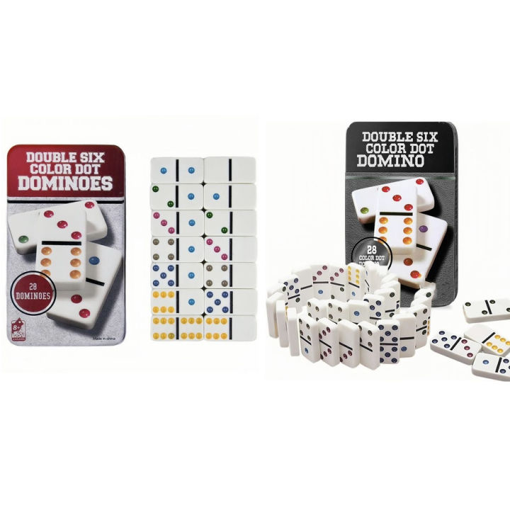 Six Color Dot Design Dominos for Kids Set of 28 Comes with a Metal