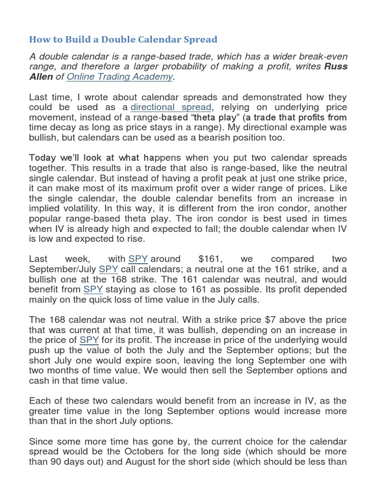 How To Build A Double Calendar Spread PDF Option (Finance) Greeks