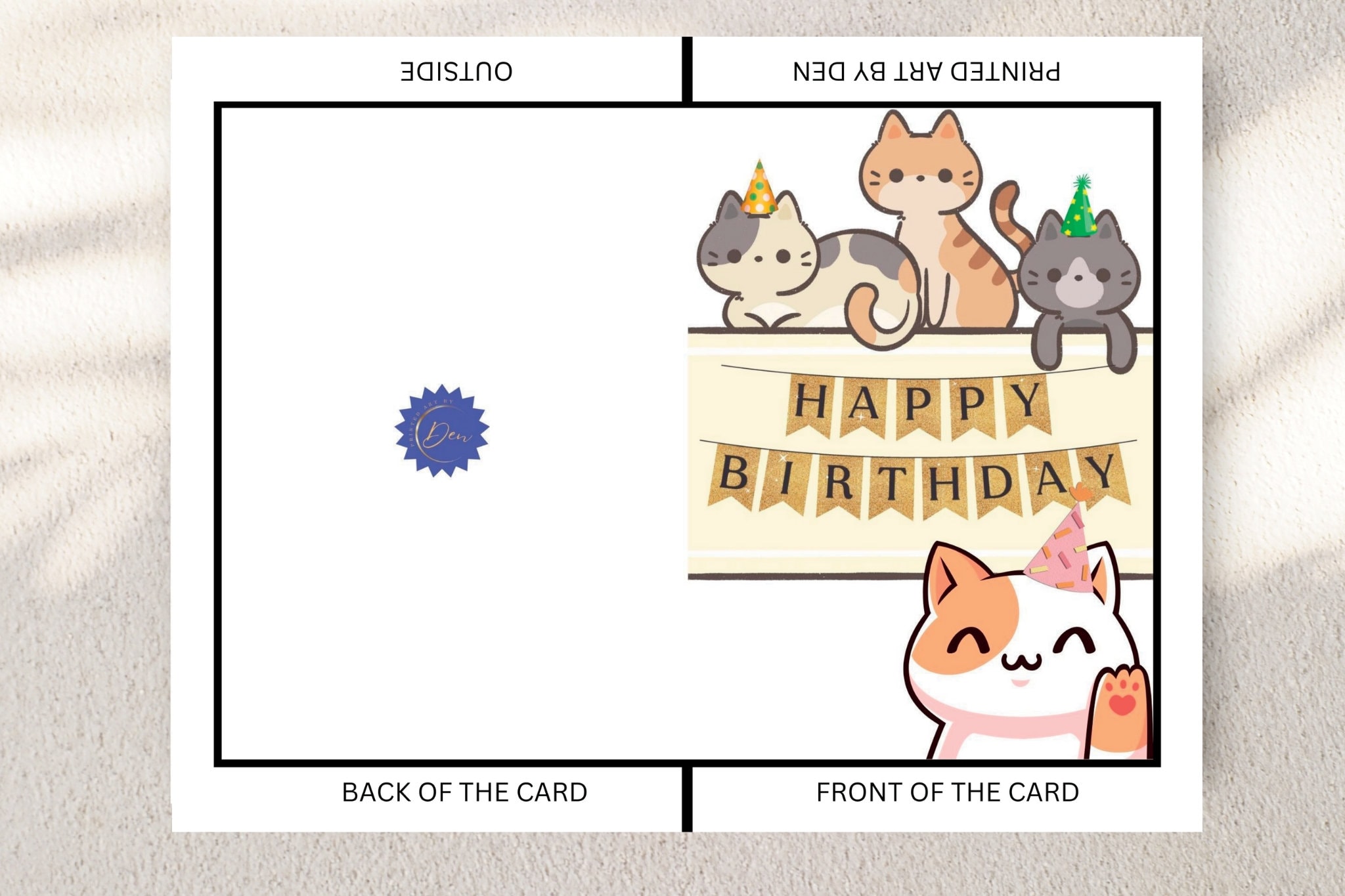 Printable Double Sided Happy Birthday Greeting Card 7 X 5 Inch Cute