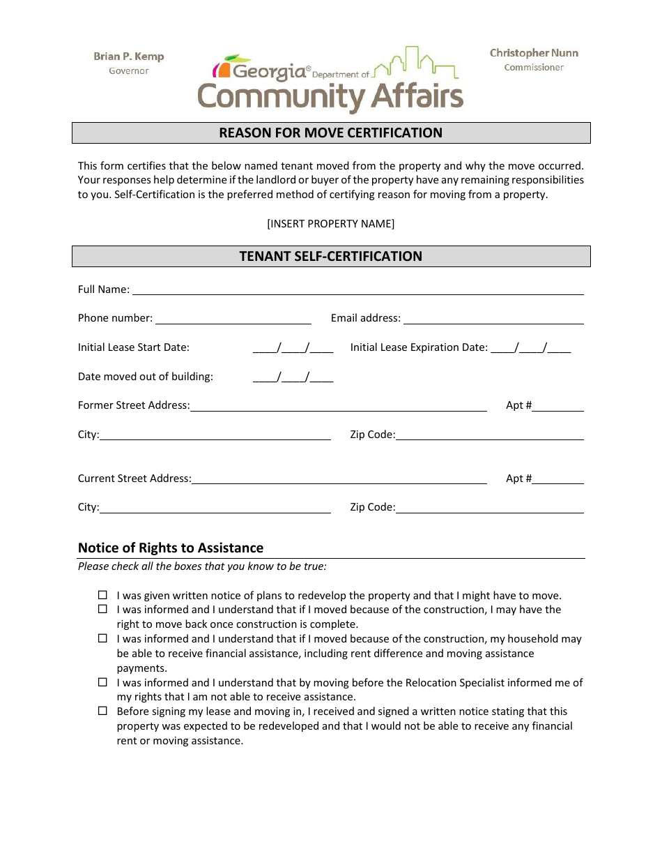 Georgia (United States) Reason for Move Certification Fill Out Sign