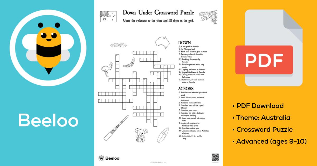 Down Under Crossword Puzzle • Beeloo Printable Crafts and Activities