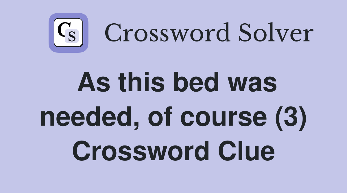 As this bed was needed of course (3) Crossword Clue Answers