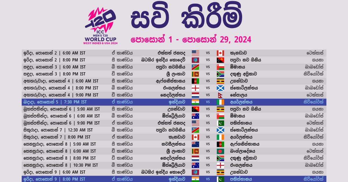 Download World Cup Fixtures in සිංහල (Sinhala) Customizable 2024 Men