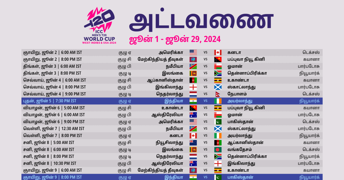 Download World Cup Fixtures in தமிழ் (Tamil) Customizable 2024 Men #39 s