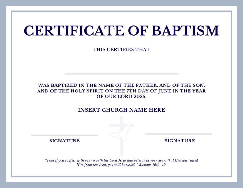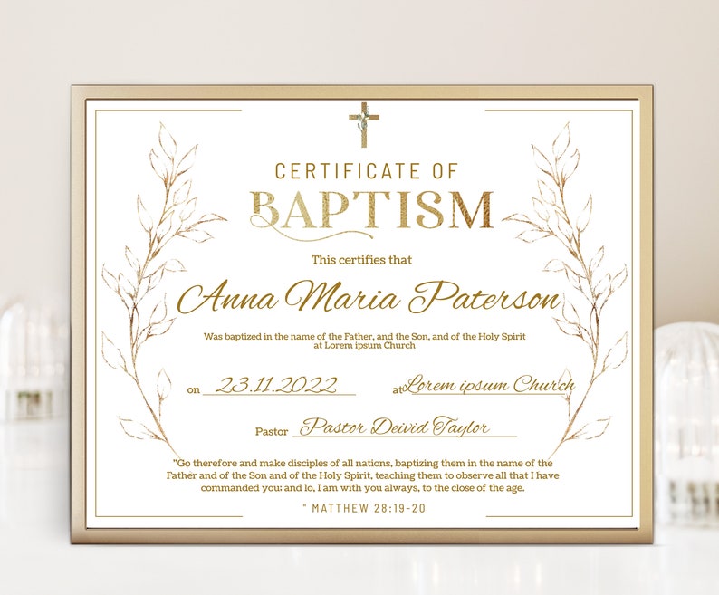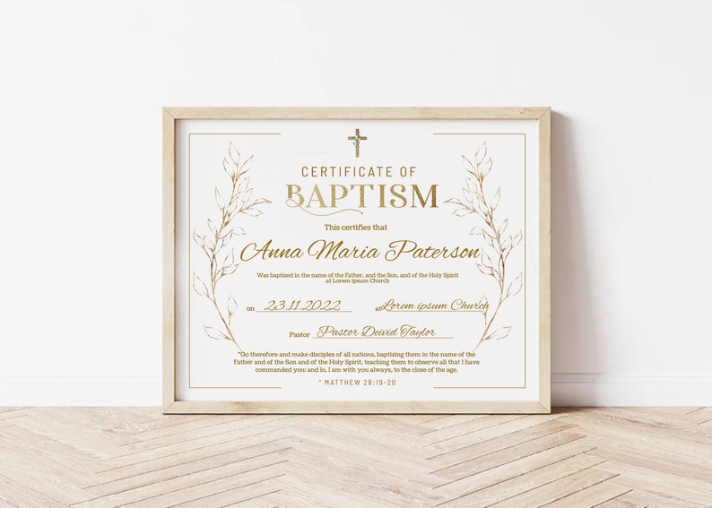 Editable Baptism Certificate Template: Church Keepsake (digital