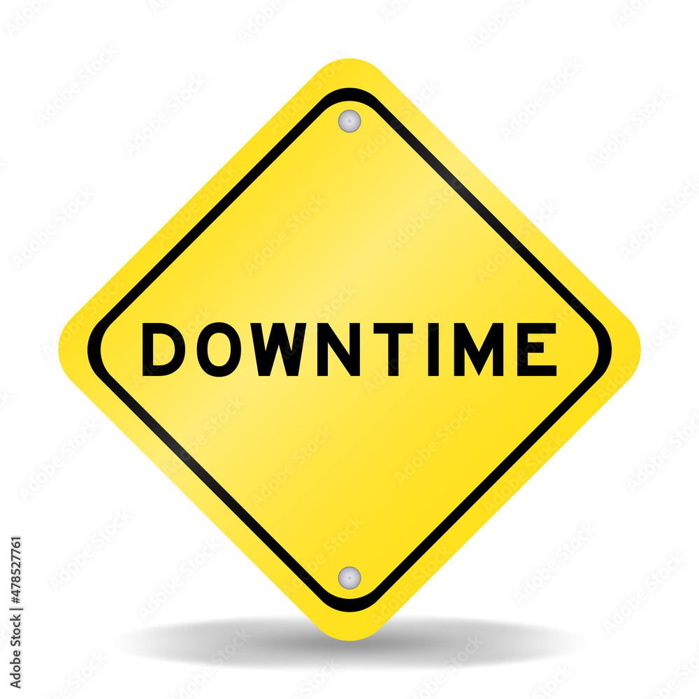 Yellow color transportation sign with word downtime on white background