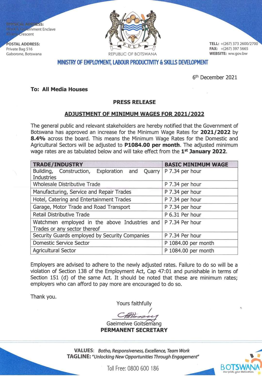 Botswana Government Salary Scale