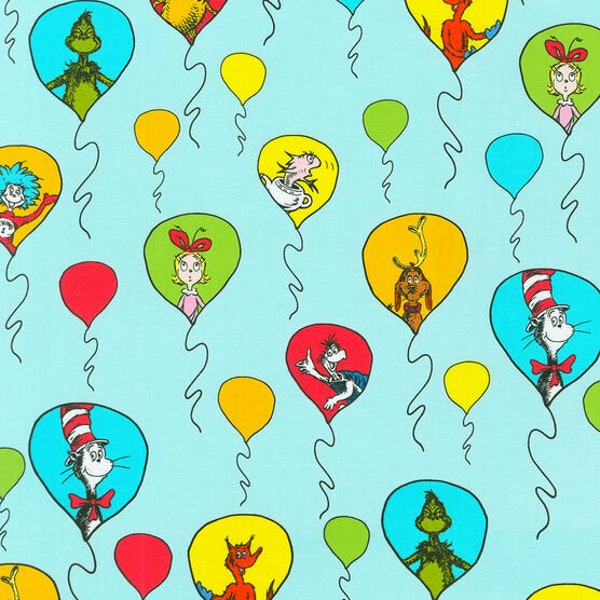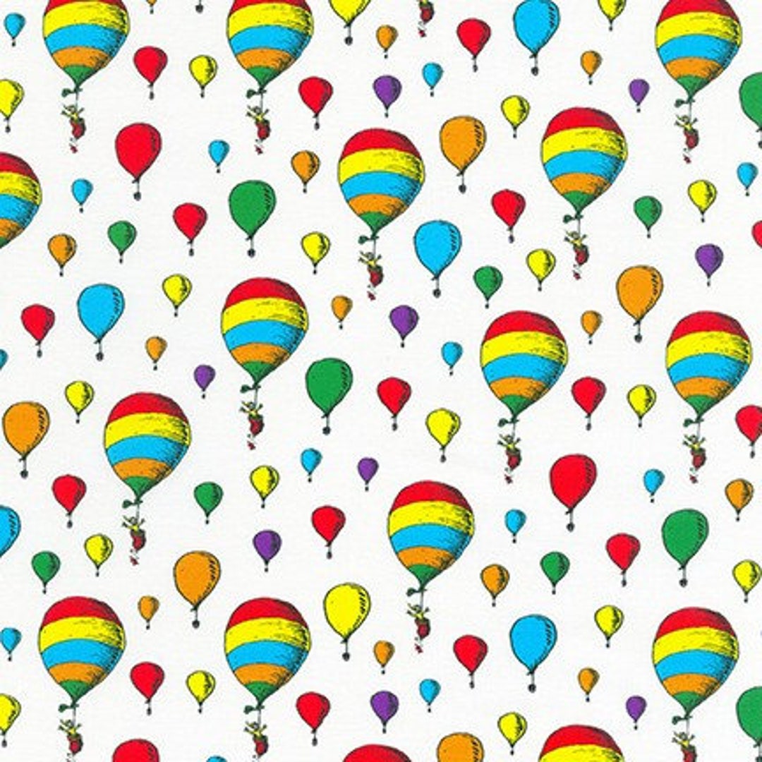 ADE20825 1 A Little Dr Seuss Balloons on White 44 /45 Wide Sold