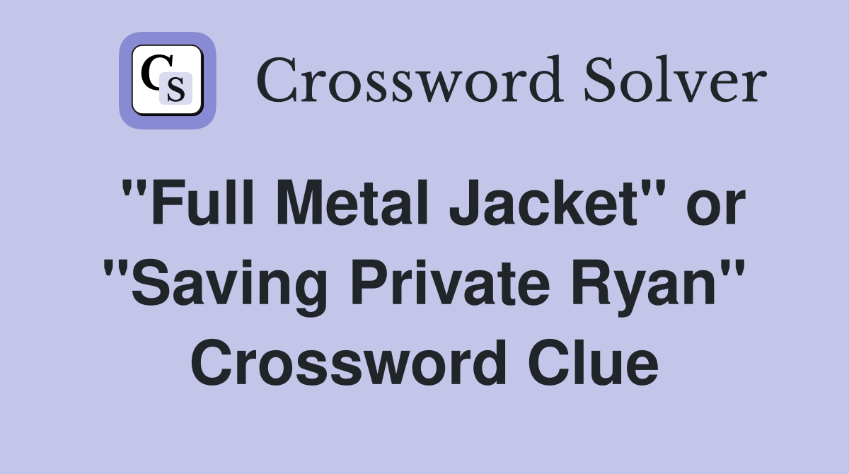 quot Full Metal Jacket quot or quot Saving Private Ryan quot Crossword Clue Answers