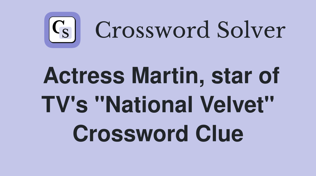 Actress Martin star of TV #39 s quot National Velvet quot Crossword Clue Answers