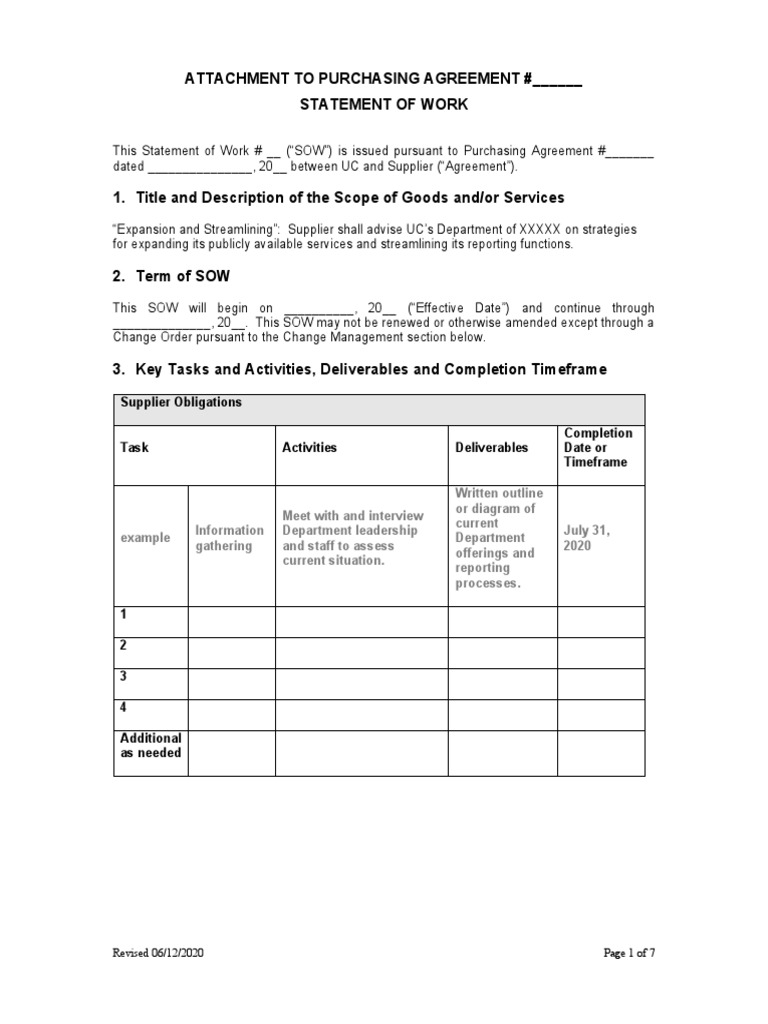 SOW Template Sample Template Samples